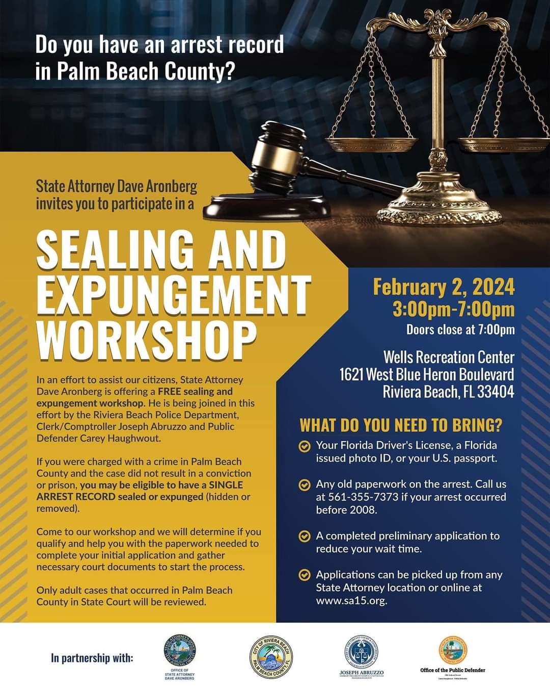 If you have been waiting to seal or expunge your criminal history record, the wait is over. Please join us for this FREE workshop. Be sure to bring ALL required documents and information.