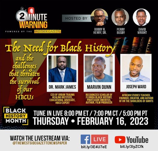 The need for Black History and the challenges that threaten the survival of our HBCUs. Let’s ask the hard questions to get the real answers not those that are watered down and white washed. Join in the conversation bring your thoughts for needed actions.