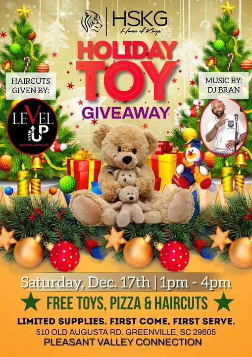 Every year, my clothing brand “HSKG”, along with Friends like yourself are giving back by donating to our Fundraiser to help purchase new Toys & Bikes for local kids in the community. We will also be giving away Free Haircuts by Rob J. Robertson Sr. And the Level Up Barbers, Food & Music provided by Brandon Ivery for the Holidays in Greenville, SC at the Pleasant Valley Connection, Inc.. There are so many kids that will not have the opportunity to enjoy Christmas this year, so It is important to give back when we can. This is why we need your help! If you can, We really would appreciate your donation this year? Every amount goes a long way! Thank You.