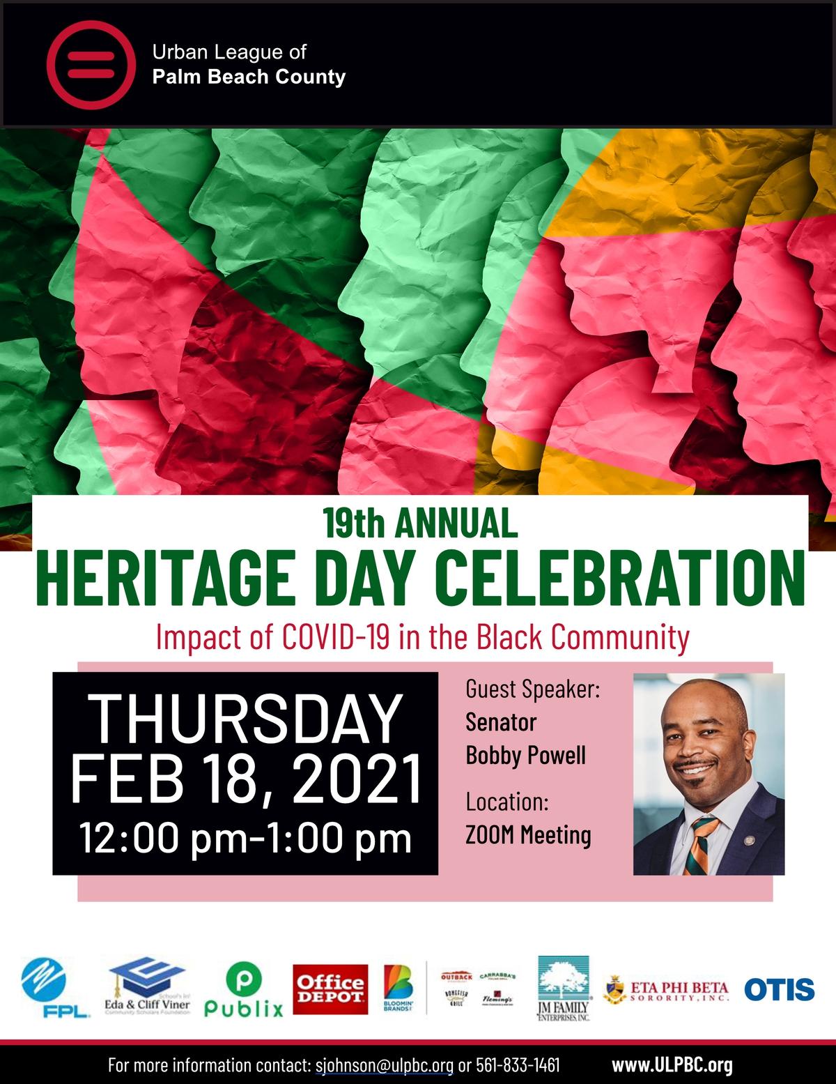 The Urban League of Palm Beach County host the 19th Annual Heritage Day Celebration with Guest Speaker Senator Bobby Powell.