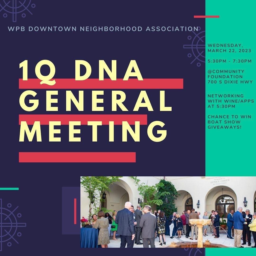 Join us for our 1st quarterly meeting of 2023! Wednesday, March 22nd from 5:30-7:30 at the Community Foundation, 700 S Dixie Highway!! Members are FREE, become a member by signing up at the door or by going to wpbdna.com to register. Were looking forward to seeing you!