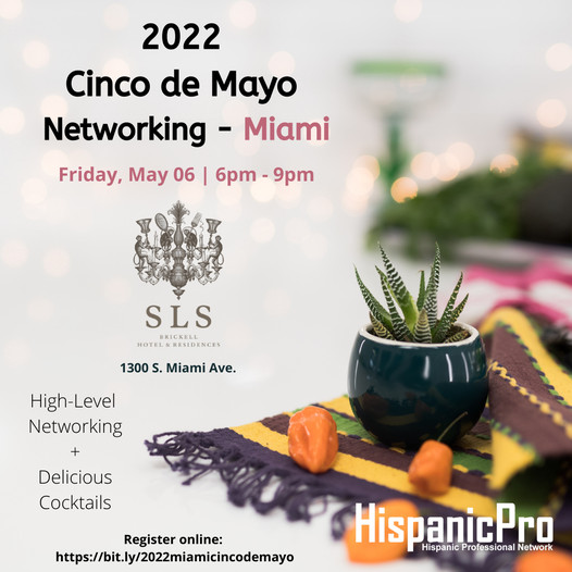 Don’t miss out! Register for the signature #Miami #CincodeMayo #Networking event at the world-class #slshotelmiami in the heart of #Brickell on Friday May 06 #business #social #culture #Florida #SLSBrickell. Join HispanicPro for the signature business and social networking event of the spring season at the world-class SLS Hotel Miami in the heart of Brickell. Don’t miss out. Secure your registration today! Meet professionals in the arts, business, education, entrepreneurs, healthcare, government, law, marketing, media, non-profit, real estate, sales, technology and more!