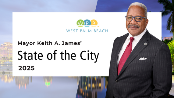 Mayor Keith A. James will deliver this year’s State of the City address on Thursday, Jan. 30, at the Palm Beach County Convention Center during the Chamber of Commerce of the Palm Beaches’ monthly breakfast series. Mayor James will highlight big moments from 2024 and share what’s in store for 2025.