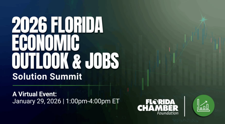 Register for the January 29 virtual 2026 Florida Economic Outlook & Jobs Solution Summit to receive an update on the economic headwinds and tailwinds impacting Florida businesses and communities. In addition to a local and national economic forecast, attendees will hear updates and solutions on Florida’s evolving workforce needs, affordable/accessible housing challenges, migration trends, and more.