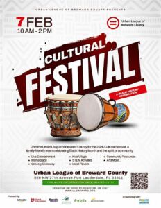 Join the Urban League of Broward County for the 2026 Cultural Festival, a family-friendly event celebrating Black History Month with live entertainment, food trucks, and community resources.