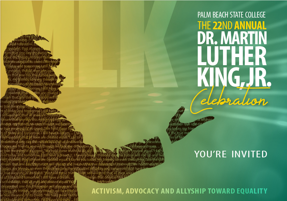The 22nd Annual Palm Beach State College Dr Martin Luther King Celebration with keynote speaker Yvette Miley don’t miss the pre show starting at 10:30
