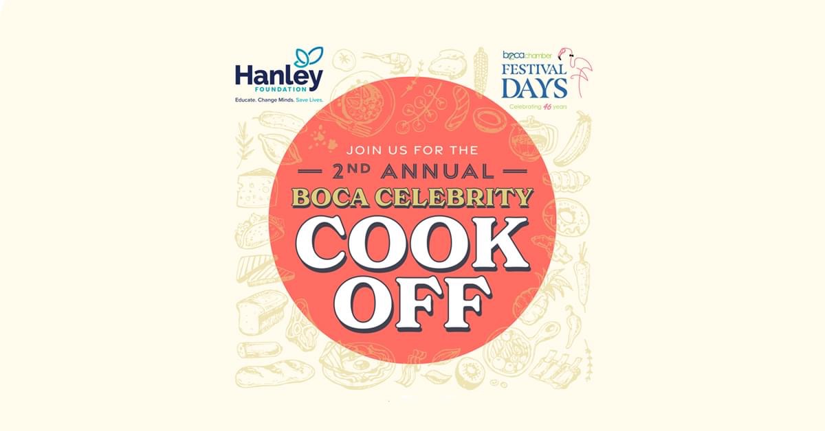 Join us at the beautiful Waterstone Resort & Marina for a gourmet happy hour benefiting Hanley Foundation! Enjoy entertainment and a cook-off between our four Local Celebrities, Tina Polsky, Marty Haberer, Brian White, and Jan Savarick, judged by Troy McLellan, President and CEO of the Greater Boca Raton Chamber of Commerce, and emceed by Neil Saffer.