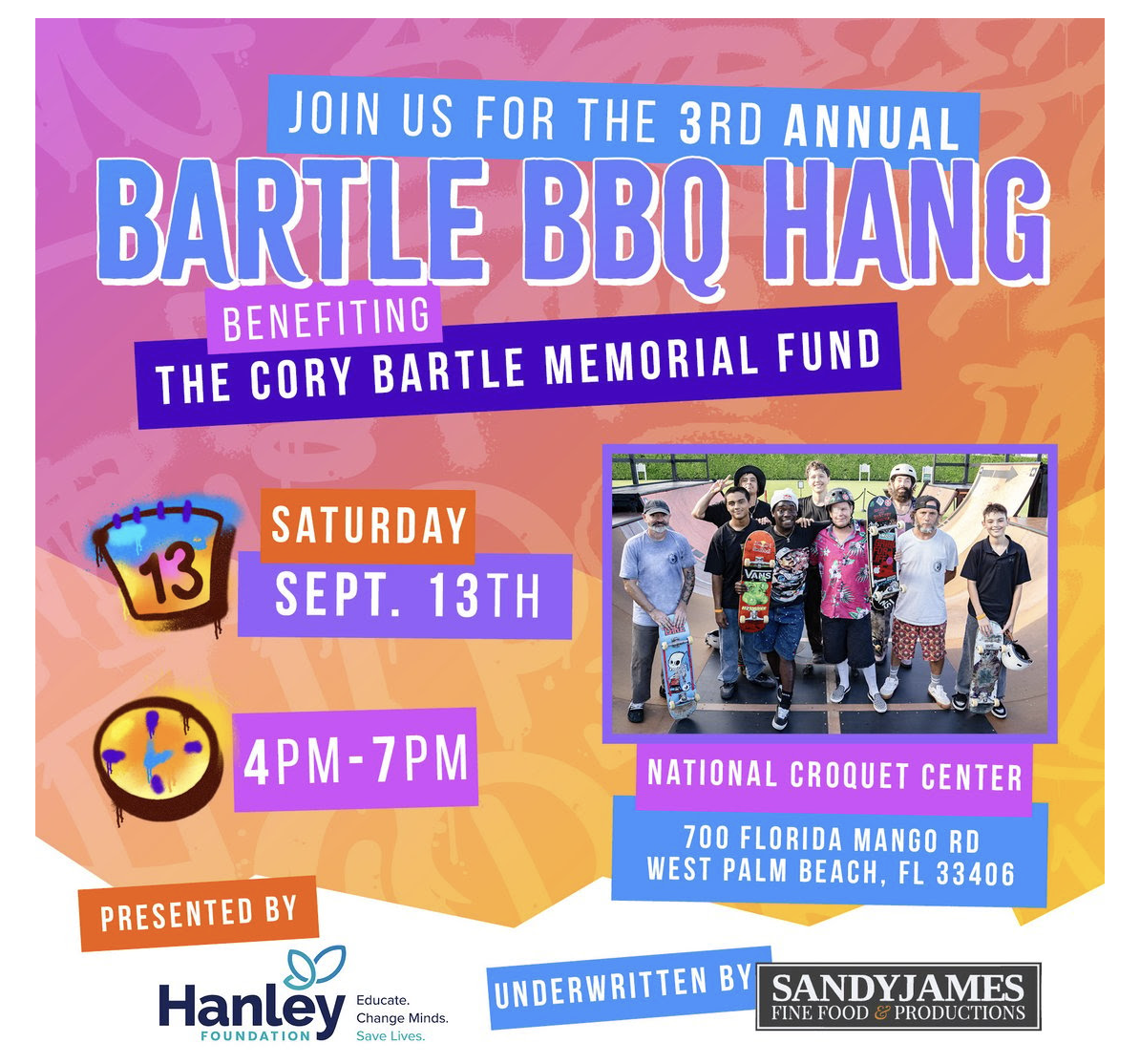 Join us on Saturday, September 13, for a BBQ feast catered and donated by Sandy James Fine Food and Productions at the National Croquet Center. This family-friendly event includes activities for the whole family, community camaraderie, and so much more!