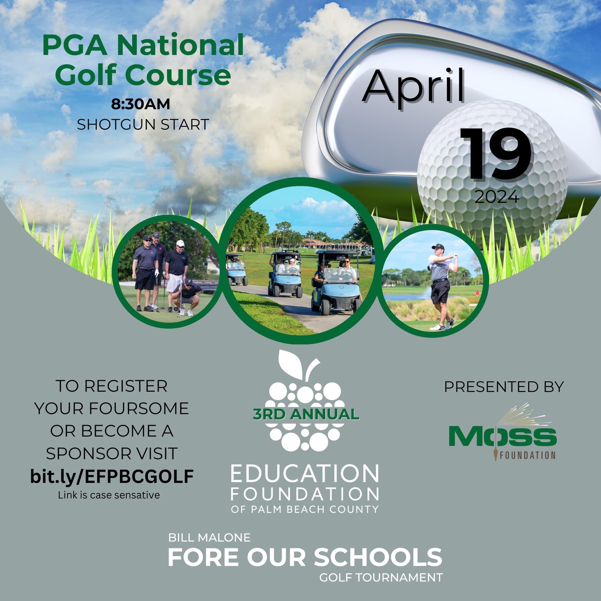 Happy National Golf Lover’s Day! πβ³ Why not celebrate by joining us for the 3rd annual Bill Malone FORE Our Schools Golf Tournament, presented by Moss & Associates? ππ Mark your calendars for April 19, 2024, as we return to the prestigious PGA National Resort for a day of golf and fun, all in support of public education in Palm Beach County. πβ Don’t miss out on this incredible opportunity to make a positive impact! Sign up now! https://educationfoundationpbc.org/events/2024golf/