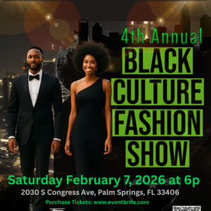 Join us for the 4th Annual Black Culture Fashion Show, taking place on February 7, 2026, at 6:00 PM in the beautiful city of West Palm Beach, Florida. This powerful celebration of Black excellence, creativity, and style is brought to you by Tabre_Sharai Modeling and DC Entertainment. Experience an unforgettable evening showcasing bold fashion, dynamic artistry, and the rich cultural heritage that continues to inspire generations. From emerging talent to seasoned designers, this show highlights the beauty, strength, and innovation of Black culture through fashion and performance. Mark your calendar and prepare to be inspired—this is a night you won’t want to miss!