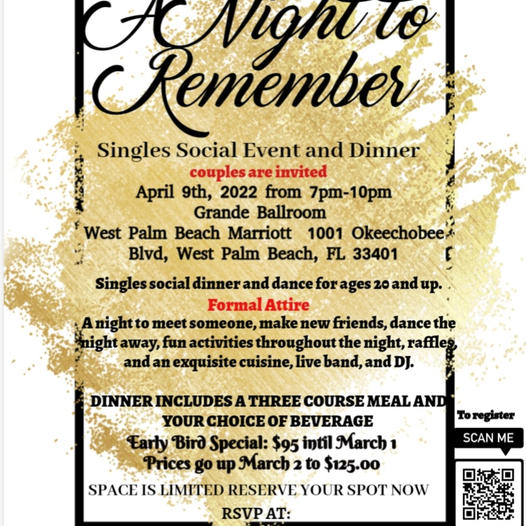 A night to meet someone, make new friends, dance the night away, fun activities throughout the night, raffles, and an exquisite cuisine, live band, and DJ.