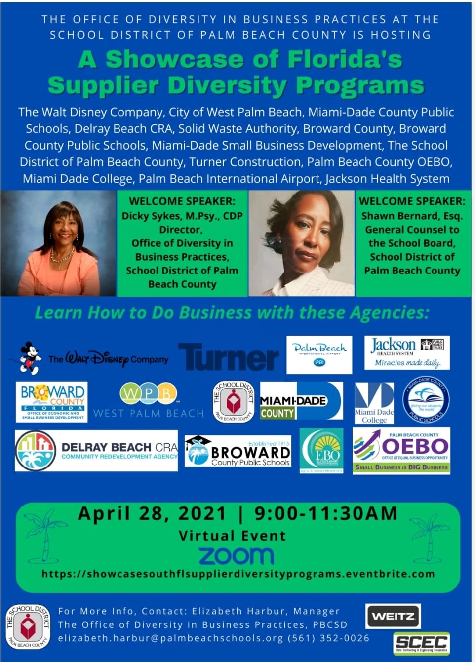 The office of diversity in business practices at the school district of Palm Beach County is hosting A Showcase of Florida’s Supplier Diversity Programs.