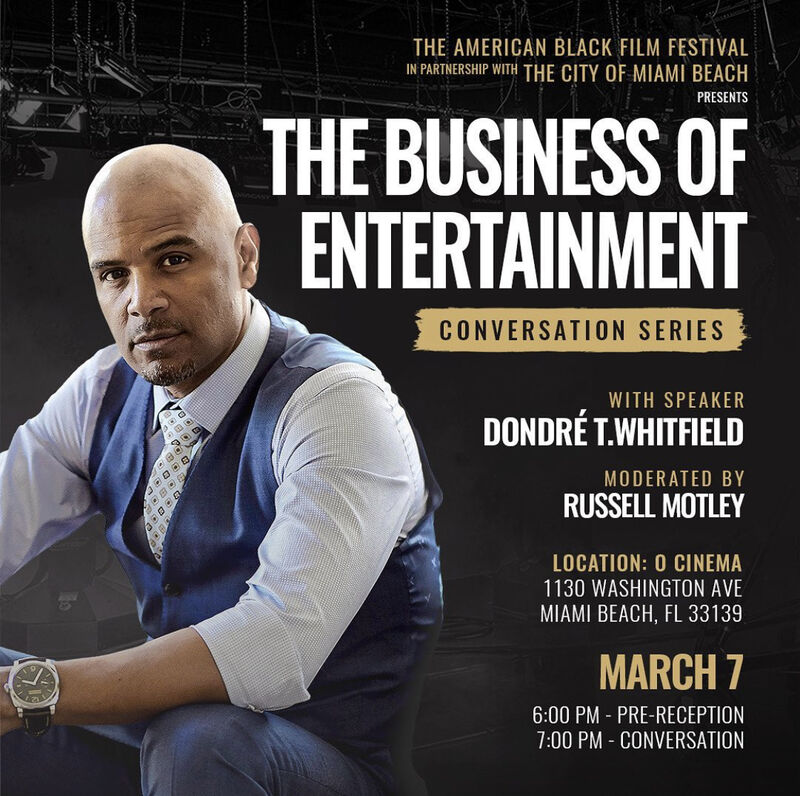 ABFF, in partnership with the City of Miami Beach, will present the first installment in its bi-annual Business of Entertainment Conversation Series featuring three-time Emmy-nominated actor and author Dondré Whitfield on March 7th!