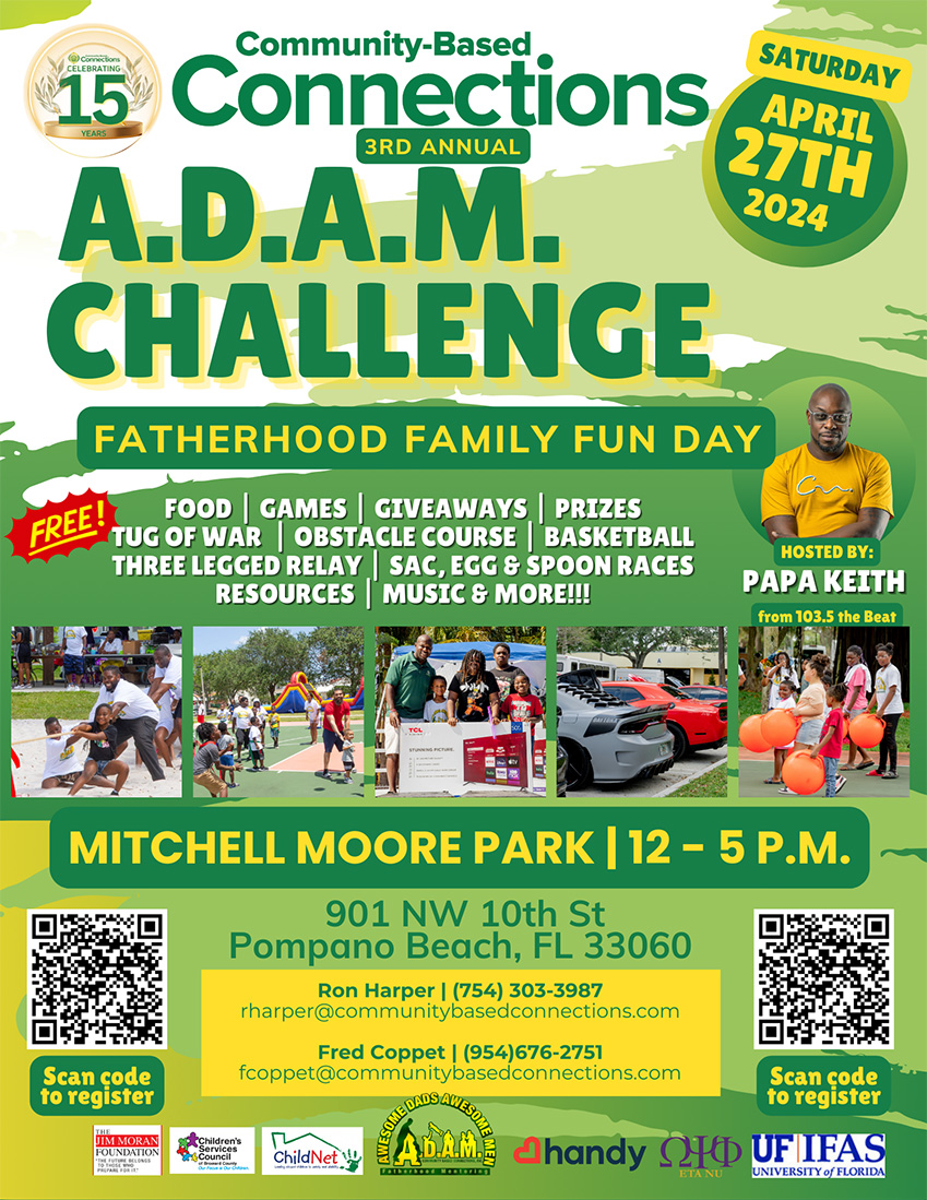 The 3rd annual A.D.A.M. Challenge — an interactive Family Fun Day and Resource Fair for the entire family is back! Join our Awesome Dads Awesome Men team on Saturday, April 27th from 12 noon to 5pm at Mitchell Moore Park.
