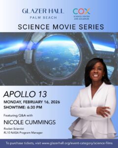 Join us at GLAZER HALL for a screening of this iconic film- based on the events of the Apollo 13 lunar mission- which took place more than 55 years ago. Astronauts Jim Lovell (Tom Hanks), Fred Haise (Bill Paxton) and Jack Swigert (Kevin Bacon) find everything going according to plan after leaving Earth’s orbit when an oxygen tank explodes, and the scheduled moon landing is called off. Director Ron Howard emphasized scientific accuracy for Apollo 13 by going to great lengths to recreate realistic conditions, working with NASA to build the set and train the cast in astronaut and flight controller duties.