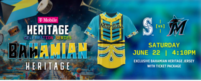 Get your exclusive Bahamian Heritage Marlins jersey with ticket purchase, and groove to the beats of a Junkanoo band! 🇧🇸⚾
