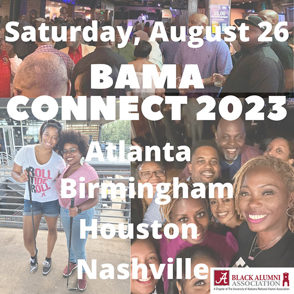 BAMA Connect was started by The University of Alabama Black Alumni Association as a way for UA Alumni and friends to connect, network and fellowship with each other before the upcoming football season. This year, the BAMA Connect host cities are Birmingham, Atlanta, Nashville and Houston. We hope to see you at your local Top Golf!