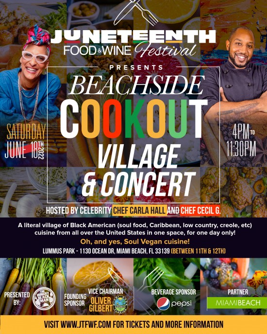 We have created a literal village on Miami Beach where foods come to life while being paired with wine and music that move the soul. From vegan to soulful seafood, the beachside cookout gives attendees a plethora of choices to delight their palette. Chefs, restaurants, cooks, pitmasters, and bakers, will form a literal beachside village of the low country, soul food, southern, Cajun, and even hints of Afro-Caribbean cuisine from all around the country to bring the proverbial cookout to life. The village will also include amazing brands showcasing both artisanal and gourmet products, so bring your eco-friendly shopping bags and wear your comfortable pants! This year we will also have a children’s interactive kitchen and fun zone to keep your little ones engaged, for a fully engaged family experience.
