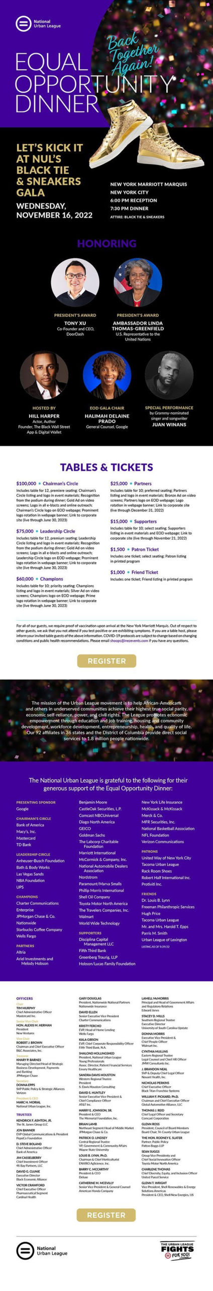 Equal Opportunity Dinner 2022 – Let’s Kick It at NUL’s Black Tie & Sneakers Gala – Wednesday, November 16th