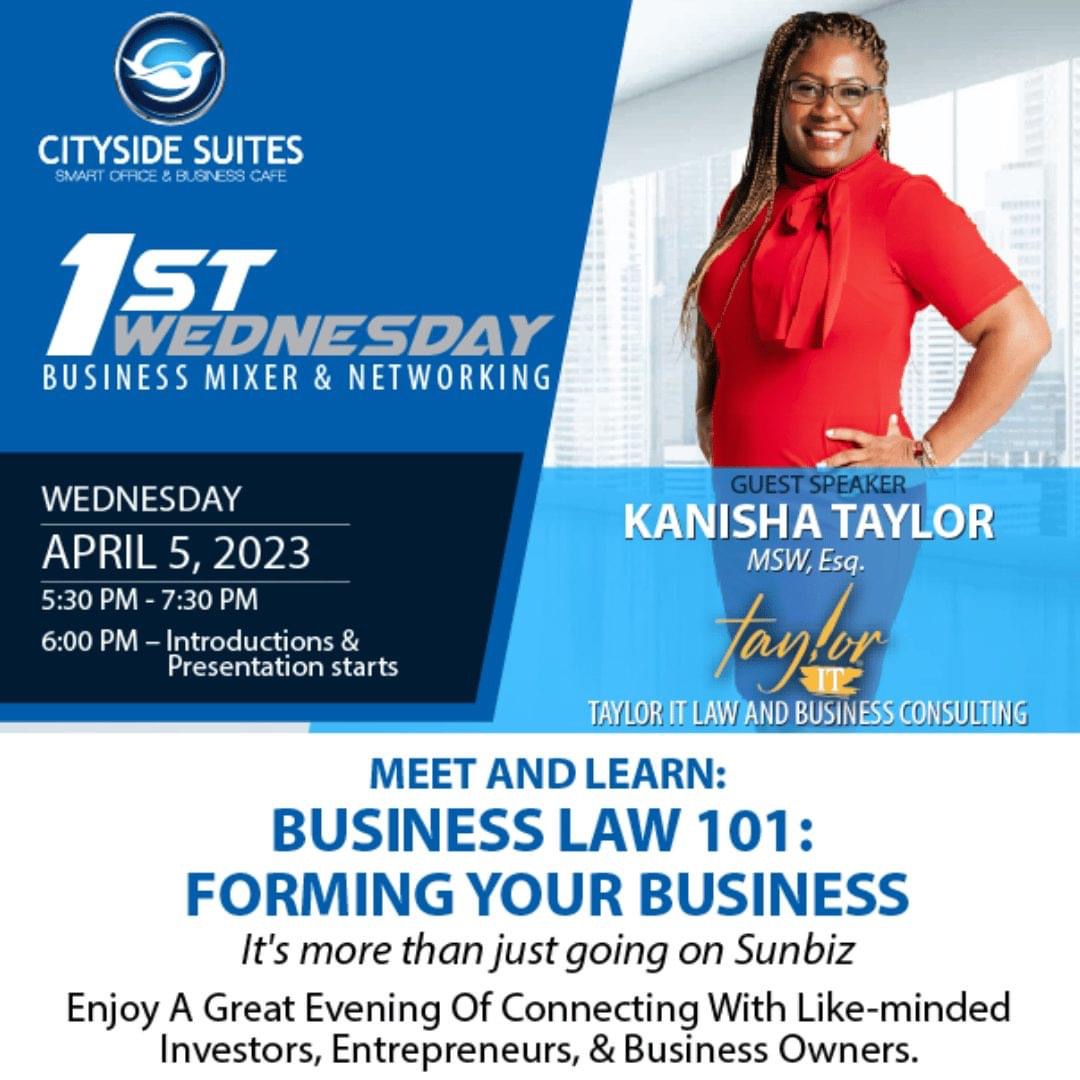 Join us on April 5th at 5:30 pm for a free event hosted by Kanisha Taylor, Business Law Attorney.
