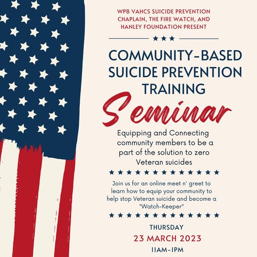 Hanley Foundation, partnered with The Fire Watch and the U.S. Department of Veterans Affairs, invites you to a community-based suicide prevention training seminar hosted by Chaplin Rachel Mikaelsen on Thursday, March 23rd, at 11AM. Learn how to equip your community to help stop Veteran suicide and become a “Watch-Keeper.” Hanley Foundation’s Tiffany Gordon, Program Specialist of the Zero Suicide Initiative, will be presenting. Register for this free resource by visiting: https://hanley.info/watch-keeper