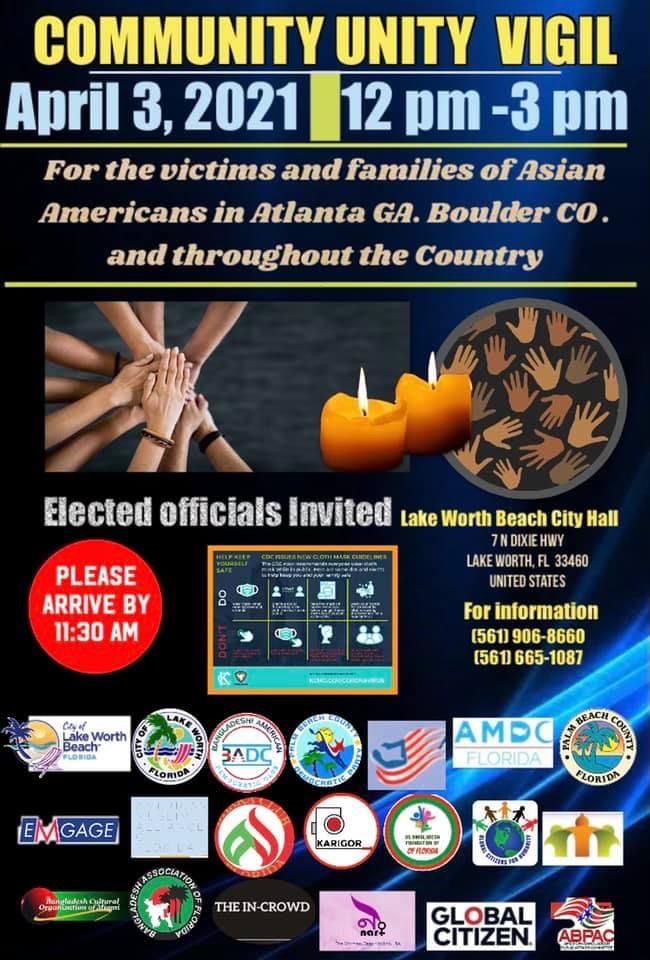 Community Unity Vigil for Asian American victims & families in Atlanta, Boulder, & throughout the country.