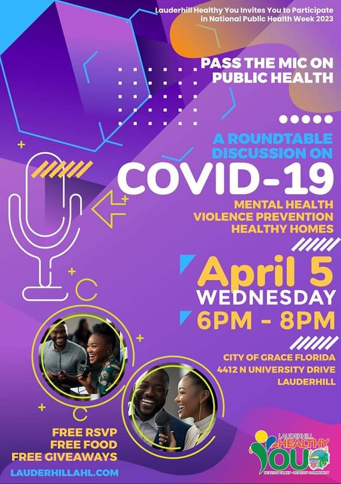 #HealthyYou #LauderhillAHL #Covid19Prevention #PublicHealth #NationalPublicHealthWeek #MentalHealth #ViolencePrevention #HealthyHomes #CommunityEvent #Empowerment #Inspiration #KnowledgeIsPower #ExpertSpeakers #RoundtableDiscussion #RegisterNow