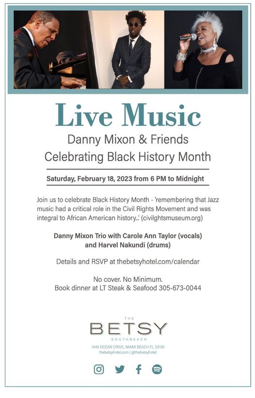 I’m performing this weekend with the incredible pianist Danny Mixon at The Betsy Hotel Saturday, February 18th 6pm-Midnight and Lummus Park Sunday, February 19th at 5pm.