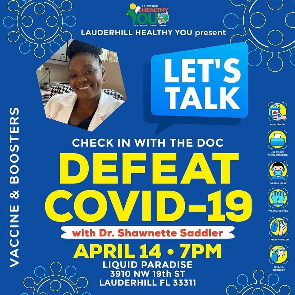 #HealthyYou #LauderhillAHL #Covid19Prevention #CommunityEvent #ExpertSpeaker #Letstalk #Checkinwiththedoc #DrShawnetteSaddler #LiquidParadise #FreeFood #Giveaways #RegisterNow @cityoflauderhill