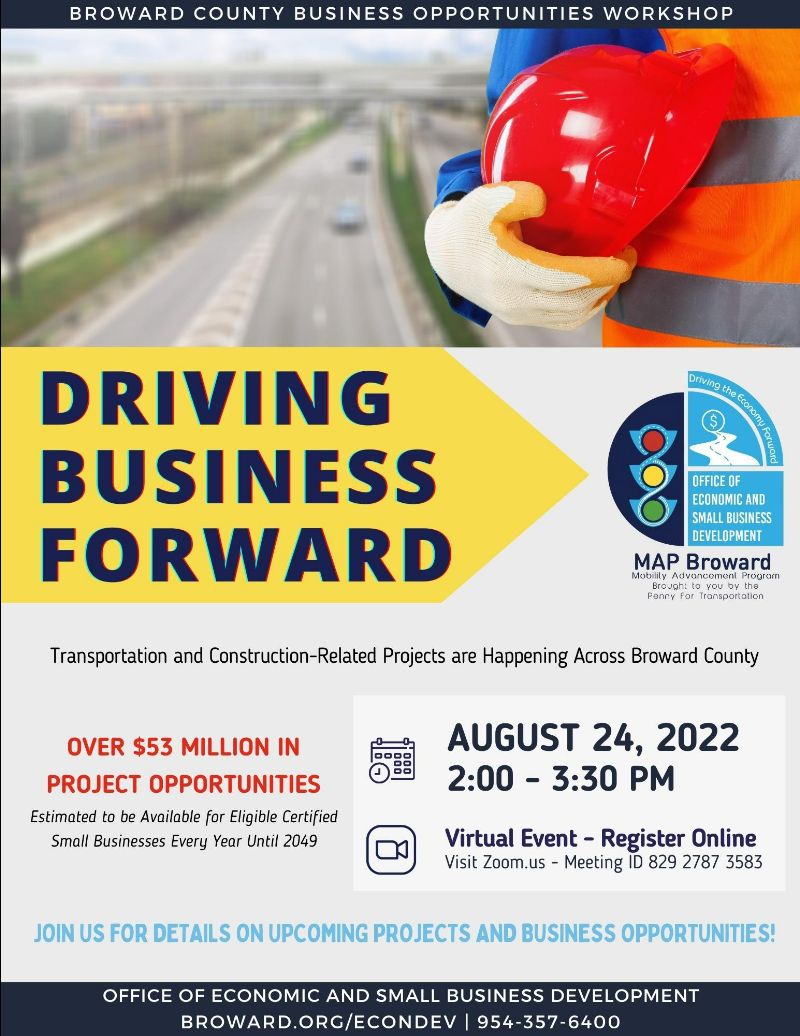 Transportation and Construction related projects are happening across Broward County. Join us for information on upcoming projects and business opportunities. Over $53 million in project opportunities!