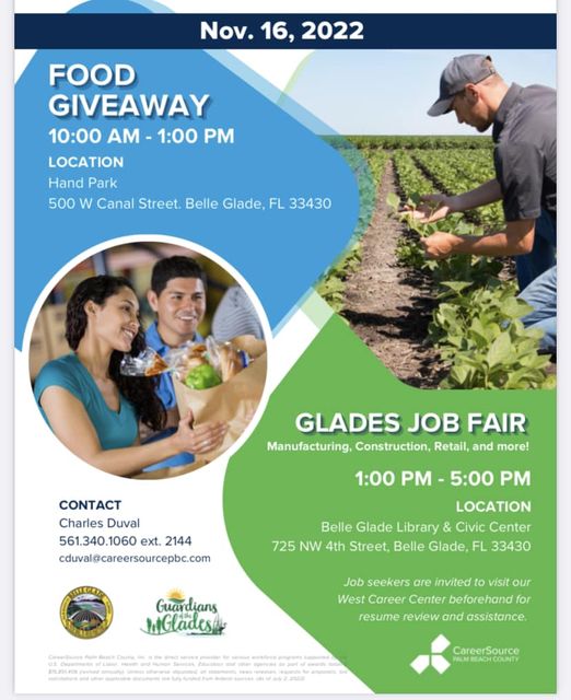 We’re happy to partner with CareerSource on important and helpful initiatives that assist the residents in the Glades on November 16 in Belle Glade!
