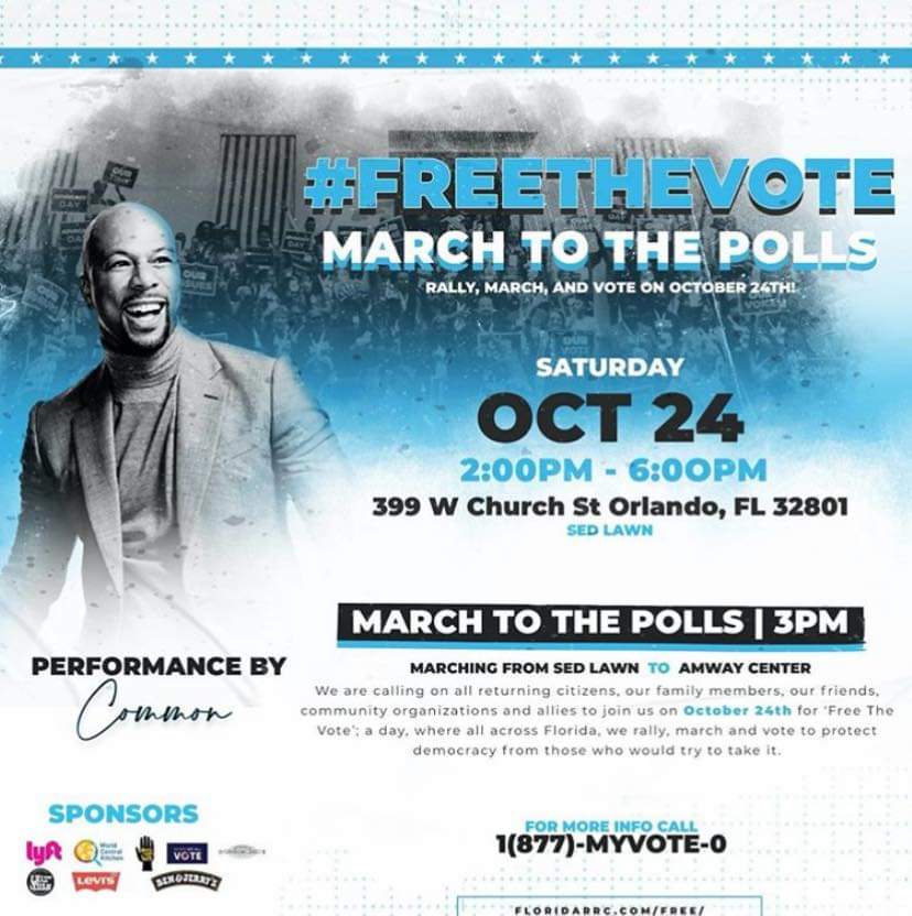 Orlando March to the Polls and see Common perform live. See flyer for details.