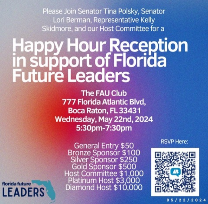 So mark your calendars and join us at the Club at FAU on May 22nd. Kindly RSVP by May 12th. Let’s toast to a brighter future for Florida, fueled by the energy and determination of our youth!
