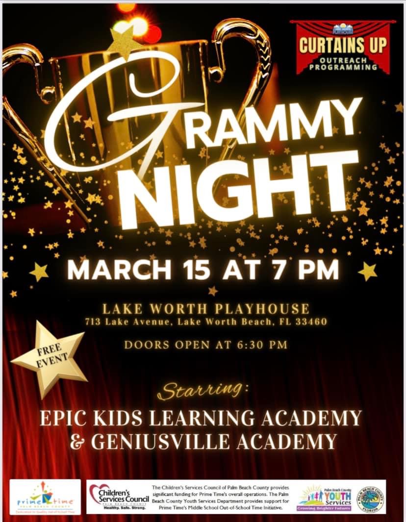 MARCH 15th 7pm ! Students from Epic Kids Learning and Geniusville Academy presenting a GRAMMY NIGHT Production produced by the @lwplayhouse CURTAINS UP OUTREACH PROGRAMMING . Directed and choreographed by myself and @lcgtheatre!