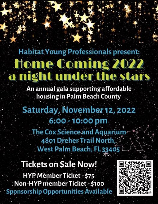 Habitat for Humanity of Palm Beach County Young Professionals present: Home Coming 2022 a night under the stars on Saturday, November 12, 2022.