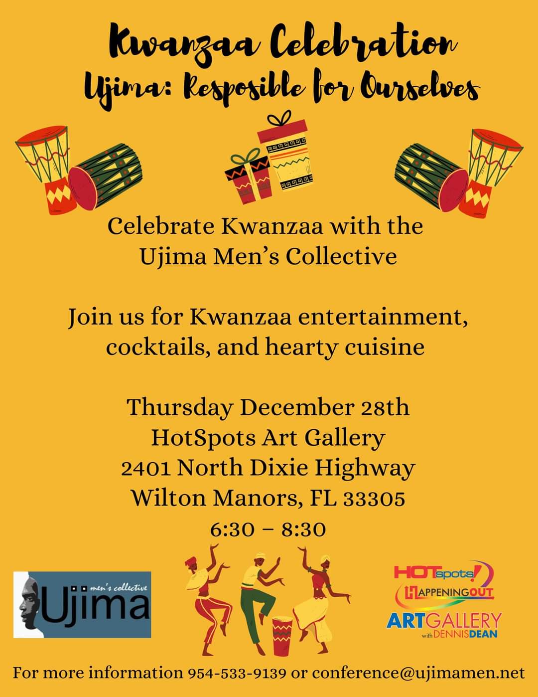 We want to see you at our Kwanzaa event. We have been celebrating and sharing Kwanzaa for a few years; if you have yet to attend, you need to attend and learn more about Kwanzaa. For more information, conference@ujimamen.net or contact us at 954-533-9139.