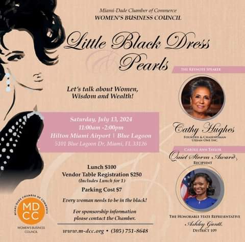 Ladies if you want to connect with other women who are about their business, this is the place to be…Women, Wisdom and Wealth!!! July 13, Little Black Dress and Pearls…please go to www.m-dcc.org, or call 305-751-8648 for information!