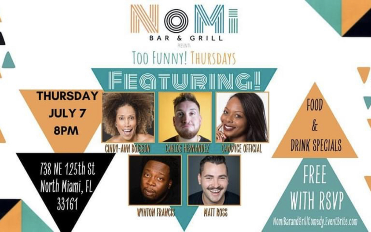 Thursday, July 7th at 8pm at Nomi Bar & Grill 738 NE 125th Street, Miami.