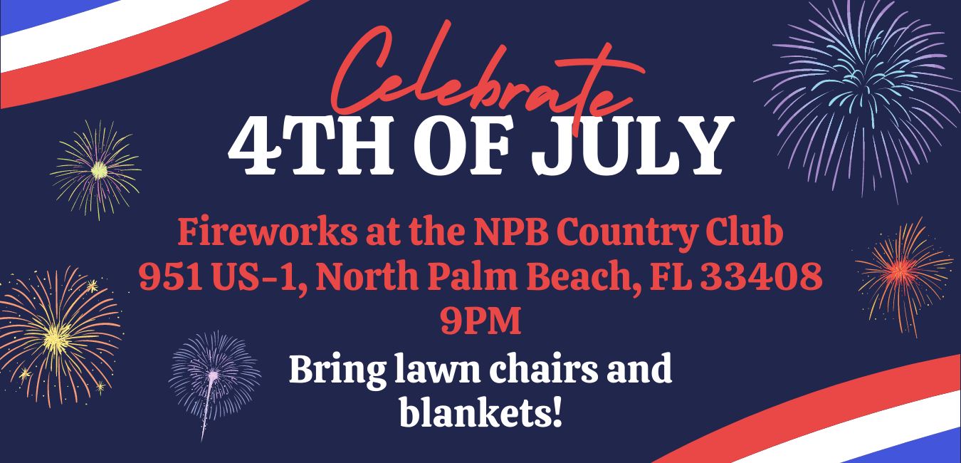 Open to the public, bring lawn chairs and blankets and join us this year for a fantastic fireworks display starting at approximately 9:00 p.m. Call the Country Club at (561) 296-1070 with any questions.