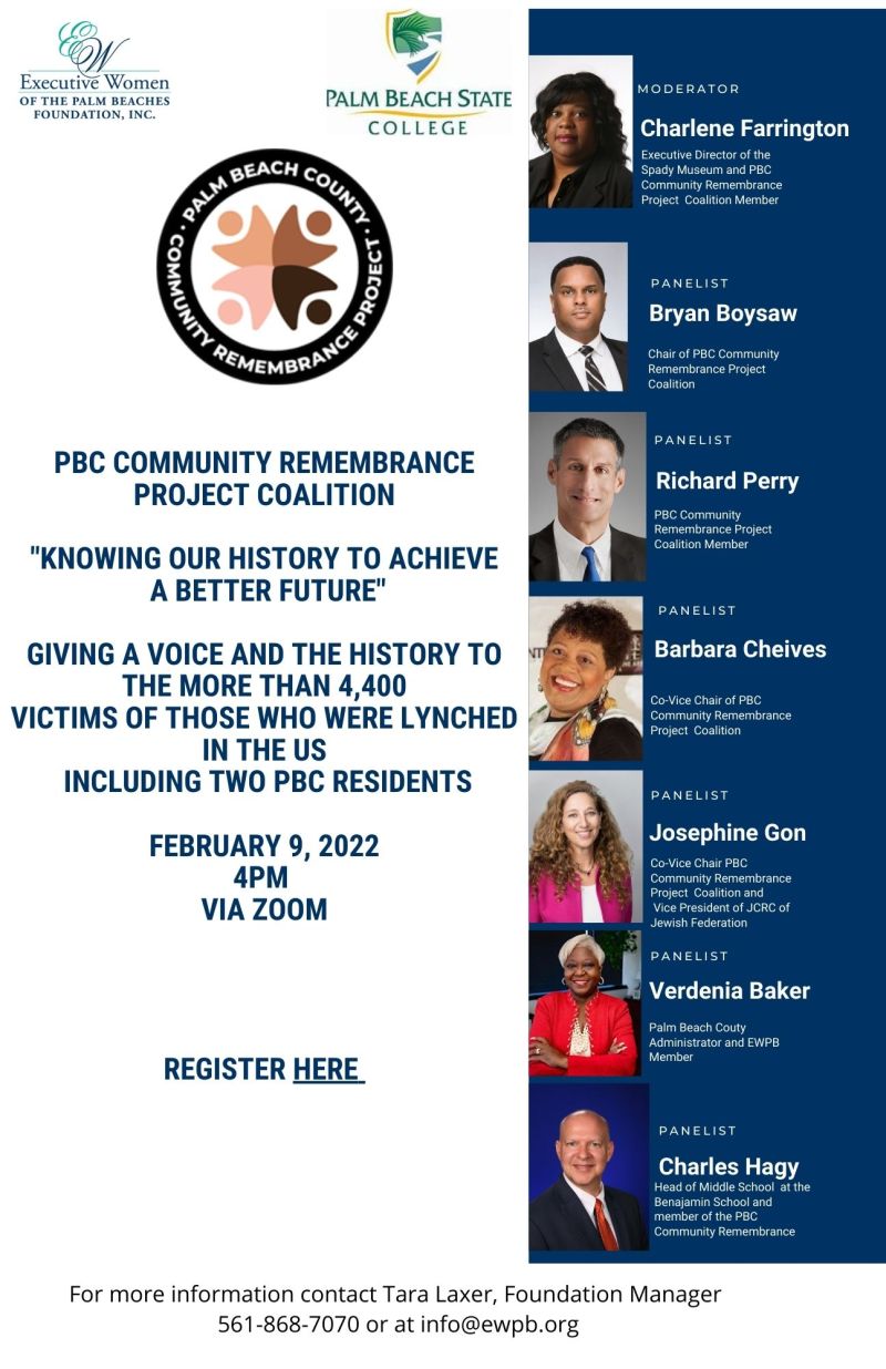 Executive Woman of Palm Beach County present Palm Beach Community Remembrance Project Panel discussion.