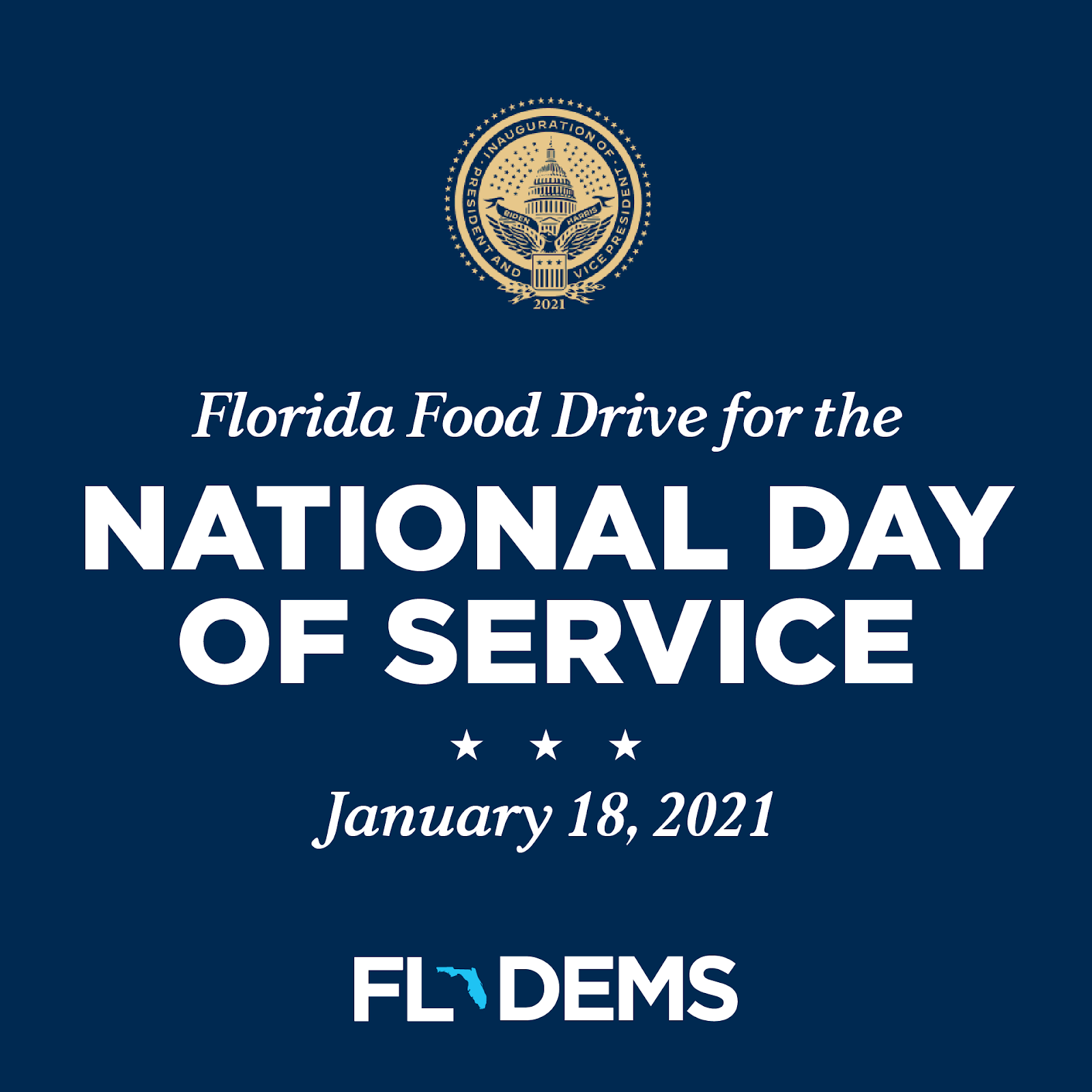 In support of PIC’s National Day of Service, on Monday, January 18, 2021, the Florida Democratic Party is collaborating with organizations throughout the state to support local food banks. We are asking County Parties, Caucuses and Clubs to organize their members, friends, and family to collect nonperishable food and deliver food collected to a local food bank.