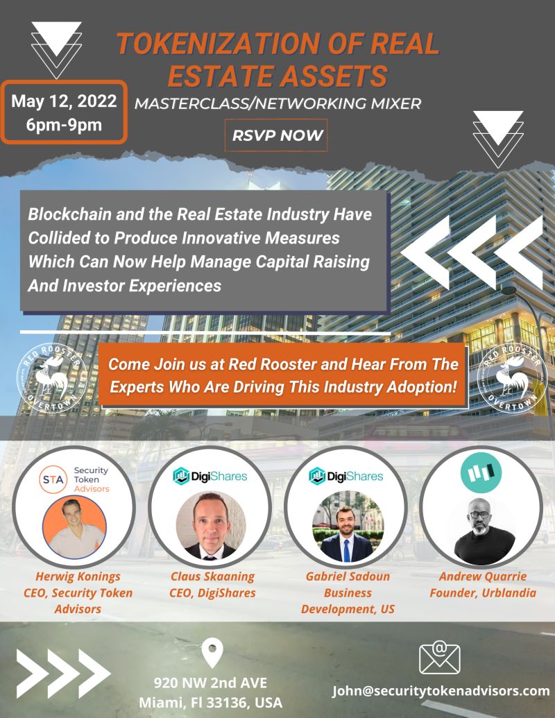 In collaboration with DigiShares and Urblandia, Security Token Advisors 🌴 is happy to announce our participation in a masterclass and networking mixer centered around Real Estate Tokenization.