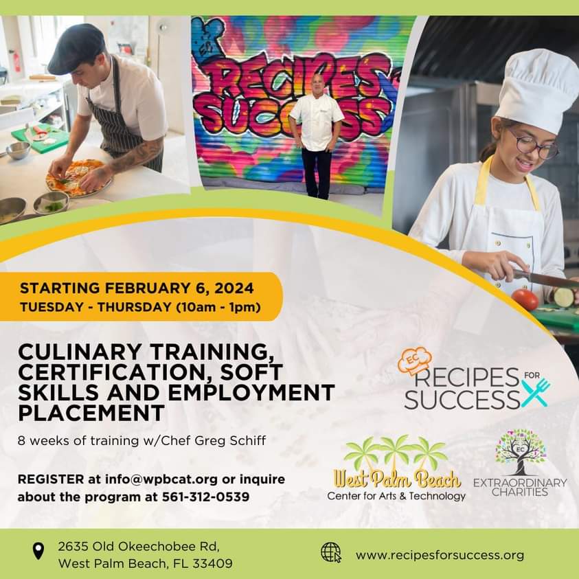 The West Palm Beach Center For Arts and Technology is excited to begin offering our Culinary Program starting February 6, 2024. If you are interested in a Culinary career, please join us for this free program that has been generously funded.