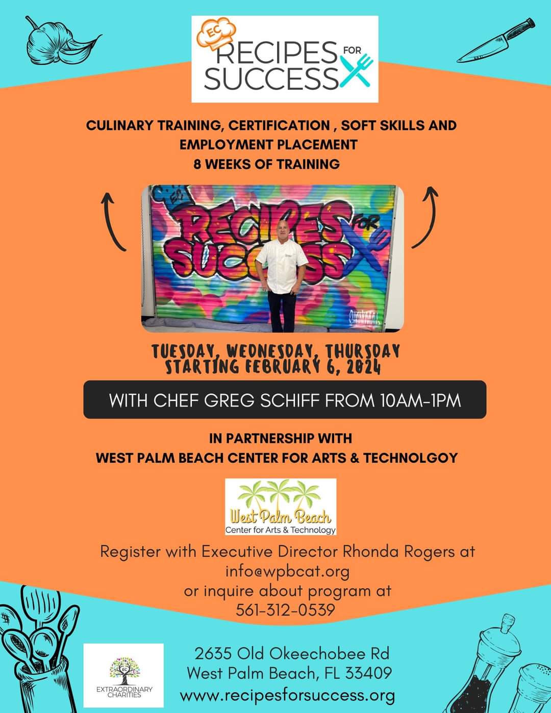 West Palm Beach Center For Arts and Technology is so excited to begin offering our Culinary Program starting February 6, 2024. If you are interested in a Culinary career, please join us for this free program that has been generously funded.