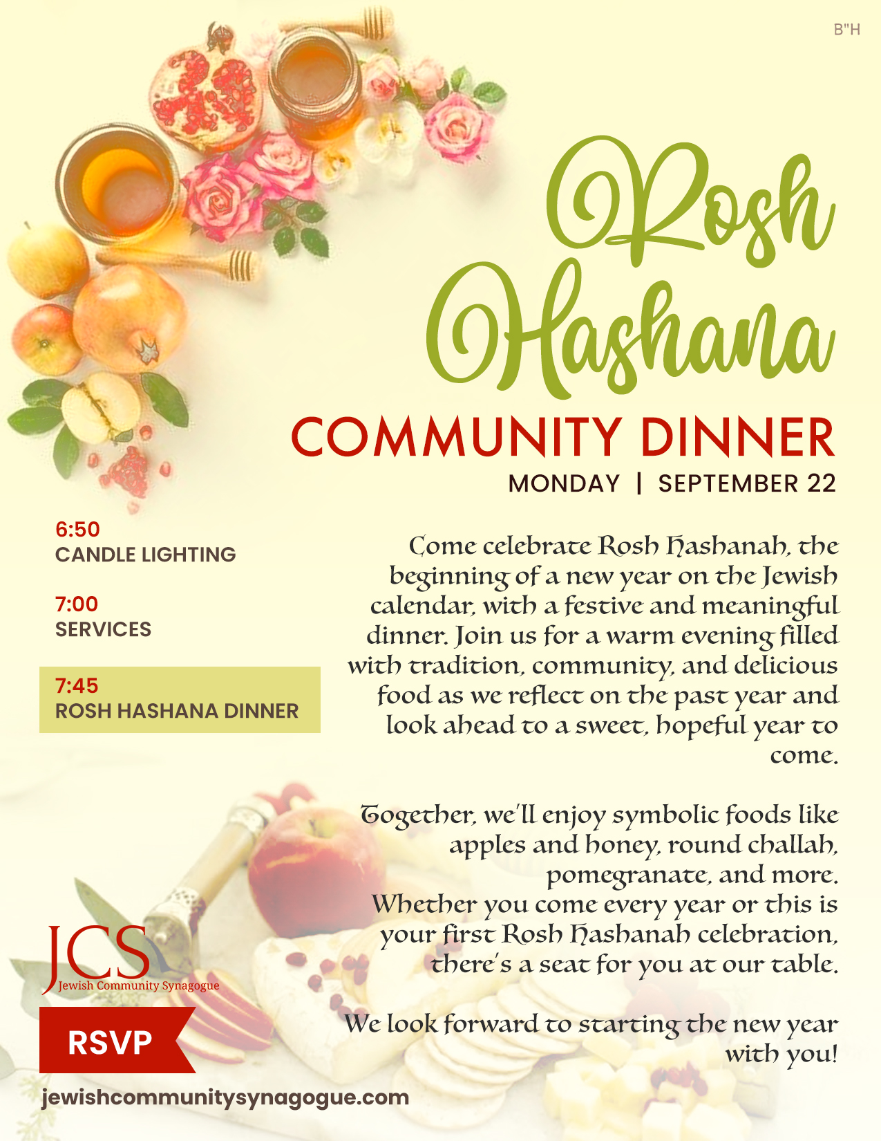 Come celebrate Rosh Hashanah, the beginning of a new year on the Jewish calendar, with a festive and meaningful dinner. Join us for a warm evening filled with tradition, community, and delicious food as we reflect on the past year and look ahead to a sweet, hopeful year to come.