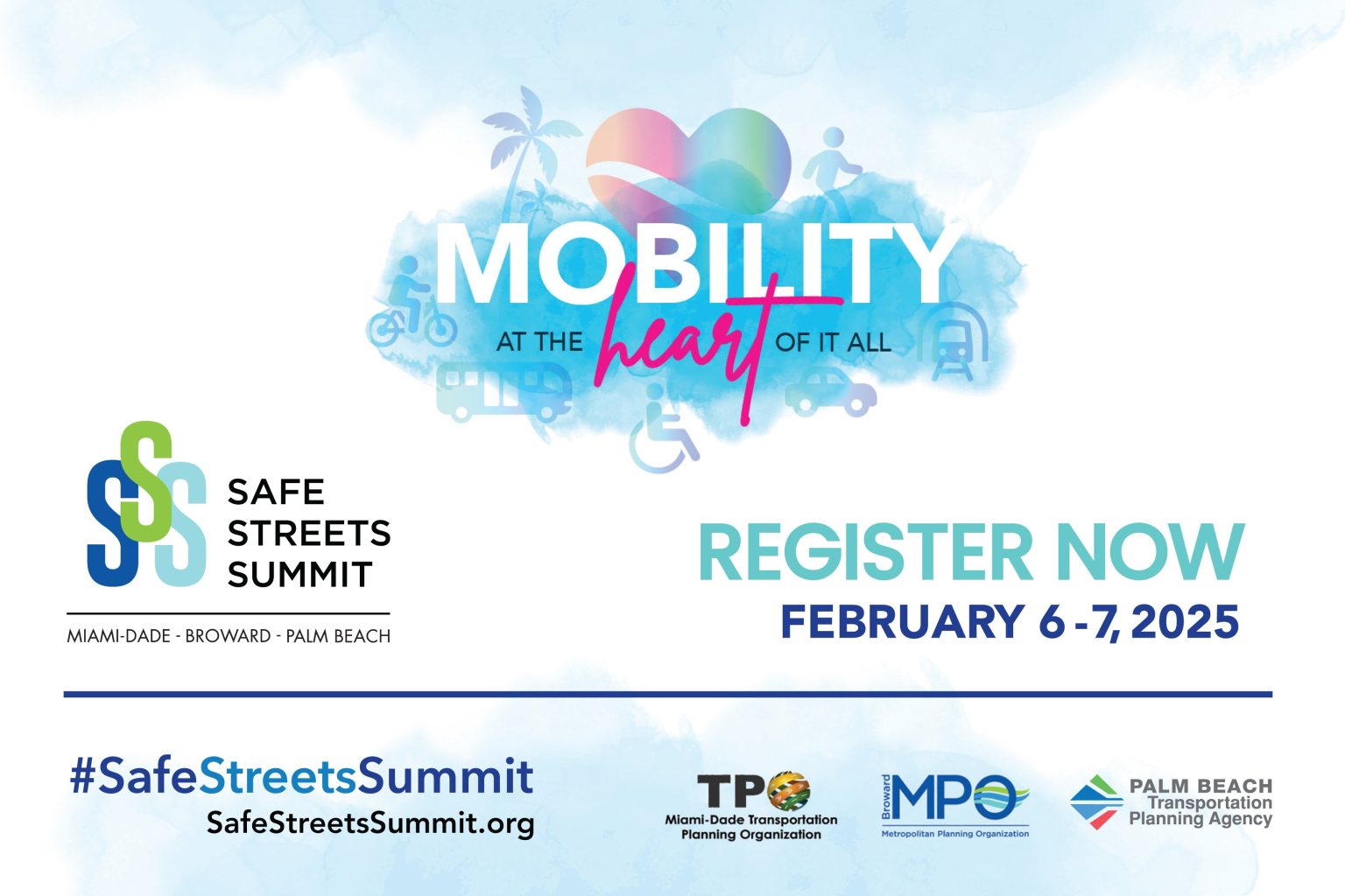 The theme for the 2025 Safe Streets Summit is Mobility at the Heart of it All, focusing on how investing in mobility solutions enhances quality of life and fosters economic development in the Southeast Florida region.