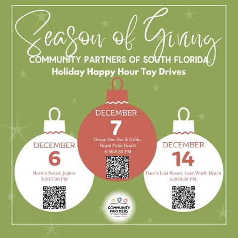 Here’s what Community Partners of South Florida has planned in December!! Links to all events below!