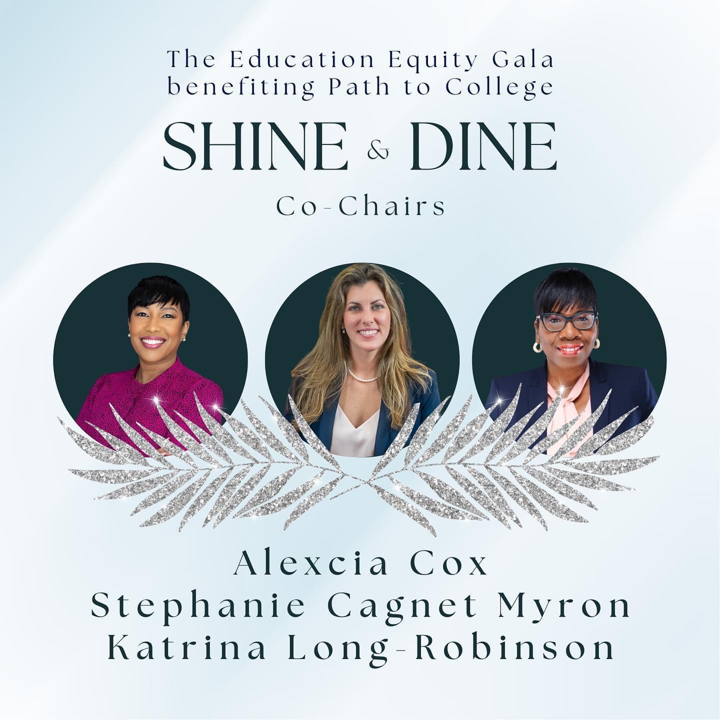 ✨Exciting News! We’re thrilled to announce our Co-chairs for Shine & Dine: Palm Beach County’s Education Equity Gala. Thank you to Alexcia Cox, Stephanie Cagnet Myron, and Katrina Long-Robinson for enthusiastically creating meaningful connections for our students and mission. Your participation will help each student shine and become best prepared for engaging in future rooms of influence they’re destined for – where they belong.