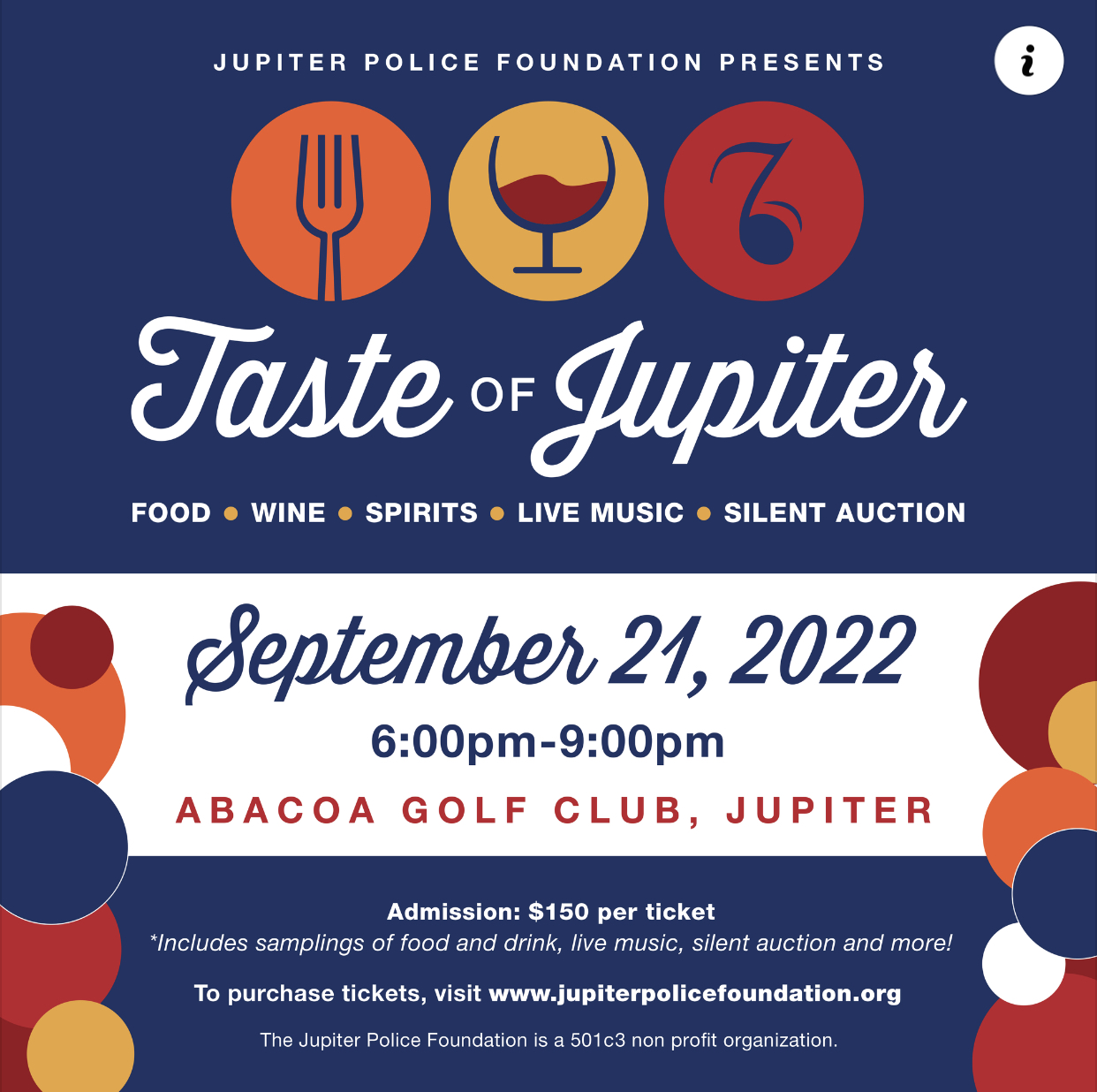 Tickets available for our annual Taste of Jupiter. A sell out event to support our Jupiter Police men and women in blue πππ Visit our website www.jupiterpolicefoundation.org to get your tickets