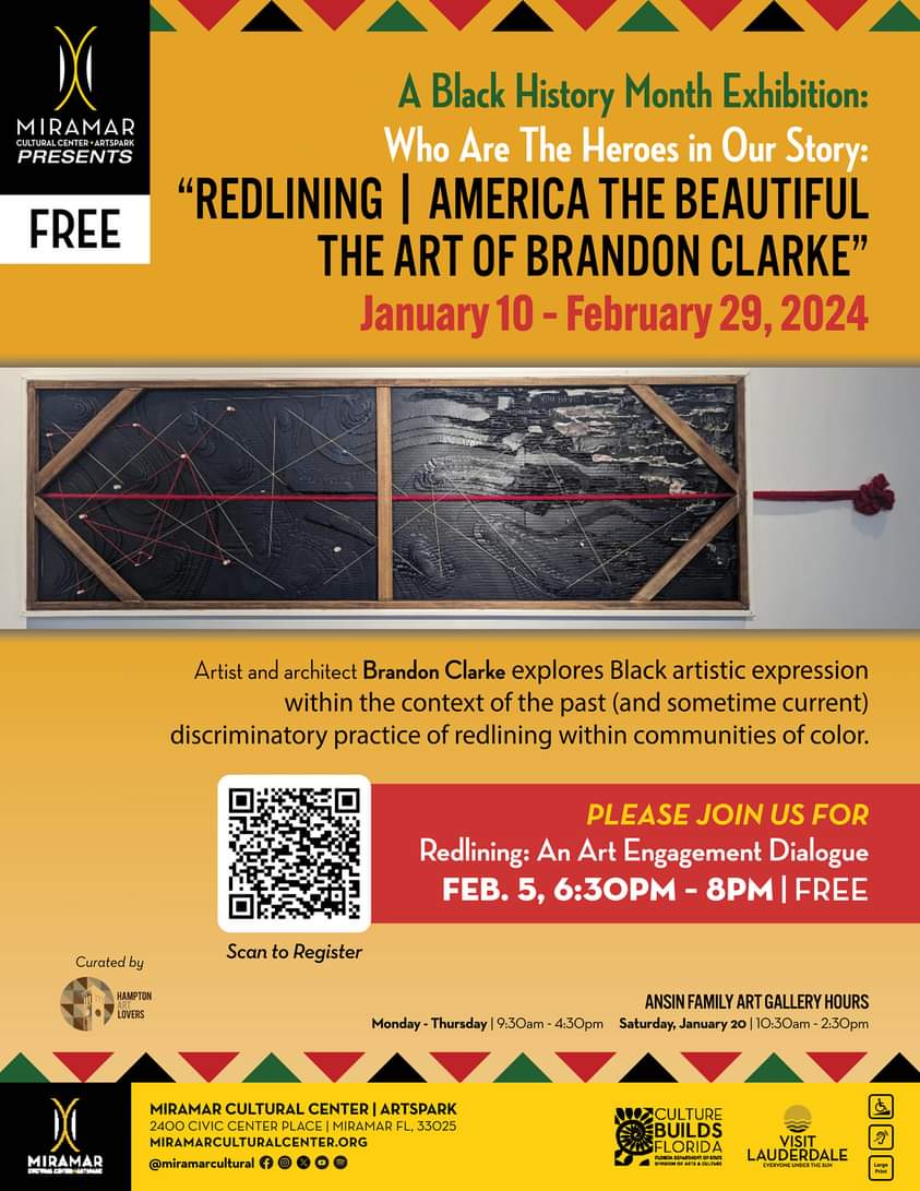 Hampton Art Lovers and Miramar Center for Cultural Arts Present “Redlining | America the Beautiful, The Art of Brandon Clarke”